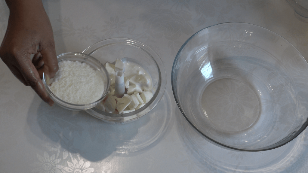 - Soit tu mets tous les ingrédients dans un blender ou un mixeur et tu verse la préparation dans le moule pour la cuire. Ici je n’ai mis que 250 g de lait concentré car j’aime les desserts peu sucrés, maintenant si tu le souhaites tu peux en rajouter pour avoir ainsi un pudding cramanioc encore plus doux.