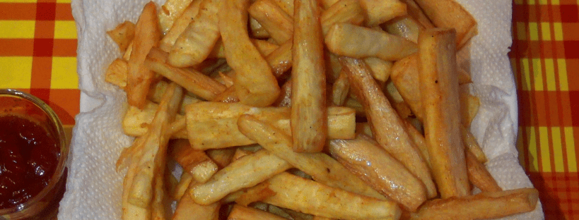 https://youtu.be/zzgEOAzsWrY Ingrédients : 1 kg de manioc frais 1 cc de sel 1 cc de curcuma en poudre 1 cc de paprika en poudre 1 cc d’ail en poudre ¼ de cc de poivre moulu 1 L d’huile pour friture Détailler le manioc en tronçons d’environ 10 cm de longueur, Éplucher le manioc ... ... et … Lire la suite Frites de manioc